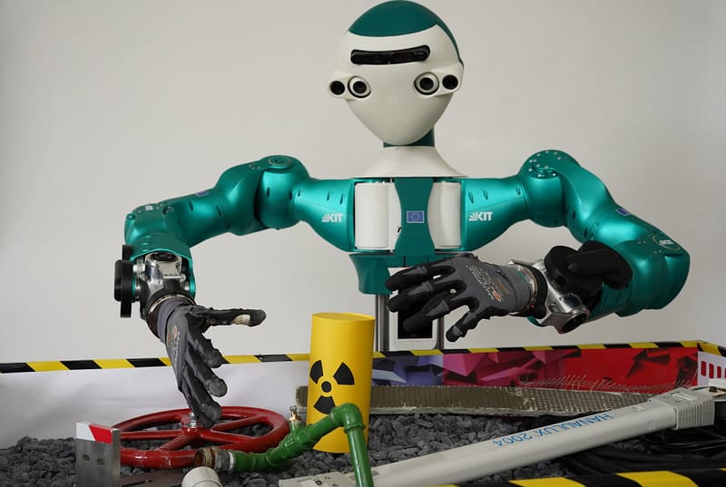 ARMAR-6 is a humanoid robot developed by researchers at the Karlsruhe Institute of Technology in Germany to work in industrial settings. Capable of using drills, hammers and other tools, ARMAR-6 also features AI technology allowing it to learn how to grasp objects and hand them to human co-workers. I