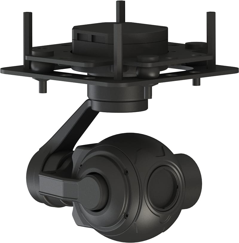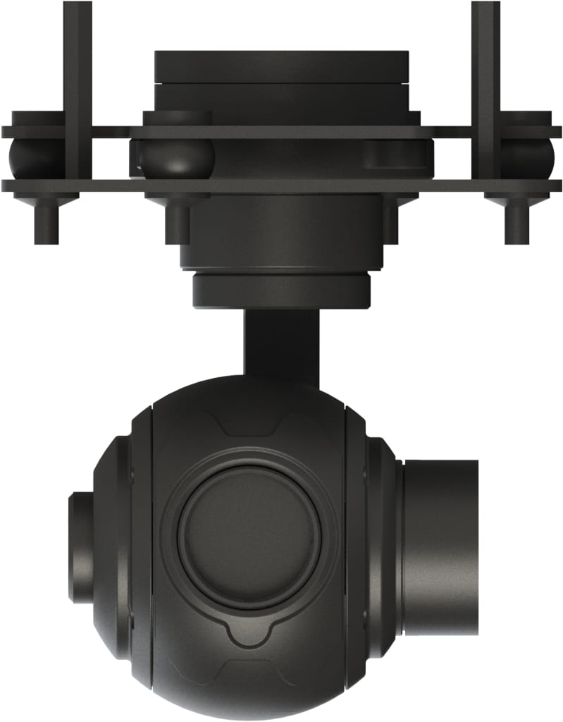 This model is a single-light thermal imaging camera mounted on a 3-axis stabilized PTZ gimbal. It uses a 25 mm fixed-focus thermal lens with 640 × 512 resolution, ideal for aerial inspection, surveillance, and environmental monitoring via drone.