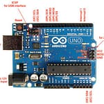 The Arduino Uno R3 is one of the most popular development boards used in robotics and embedded systems. Based on the ATmega328P microcontroller, it features 14 digital I/O pins, 6 analog inputs, and USB connectivity for programming and serial communication.