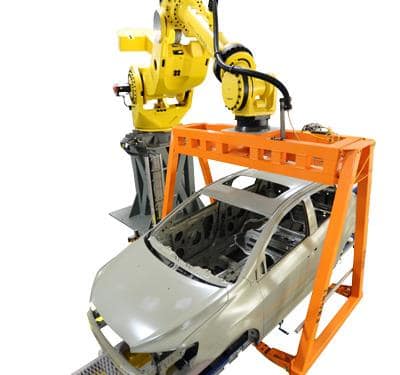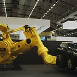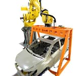 The FANUC M-2000 Series offers the strongest 6-axis robots on the market, with a handling capacity of up to 2.3 tons and a reach of 4.7 meters. Its vertical lifting stroke of 6.2 meters and wide horizontal reach make it perfect for processing large and heavy workpieces. Designed for automotive and metal industries, it efficiently and safely lifts complete cars and heavy parts.