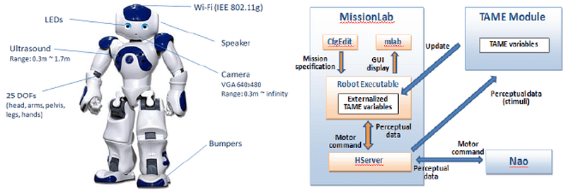 Softbank Robotics’ first humanoid robot, NAO, works as an assistant for organizations in industries ranging from healthcare to education. Only two feet tall, NAO features two 2D cameras for object recognition as well as four directional microphones and speakers, plus seven touch sensors, to better interact with people and its surrounding environment.