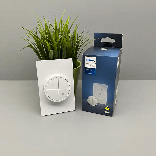 The Philips Hue Tap Dial Switch is a premium wireless controller featuring four customizable buttons and a smooth dimmer dial. Control scenes, adjust brightness, and manage multiple zones—without a hub for basic use or with a Hue Bridge for full smart home integration.