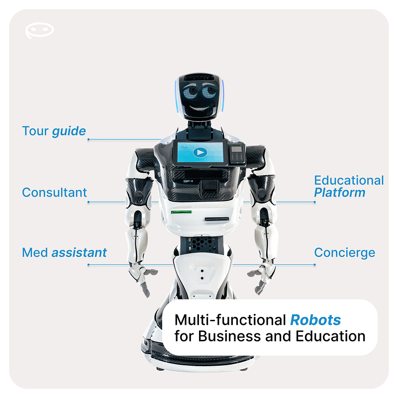 Promobot is a customizable humanoid robot that’s capable of working in a range of service-oriented roles. Equipped with facial recognition and chat functions, Promobot can issue keycards, scan and auto-fill documents, and print guest passes and receipts.