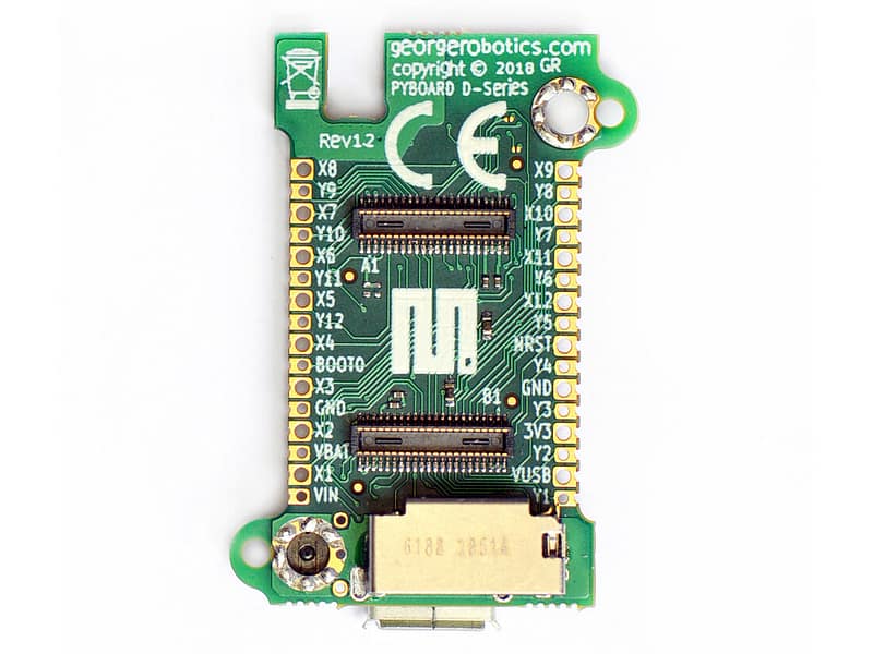 Designed to run MicroPython natively, the Pyboard D-series offers high performance and rapid development for embedded and robotic applications. It features an STM32F722 MCU, Wi-Fi, Bluetooth, and a compact form factor, ideal for micro-robots and interactive devices.