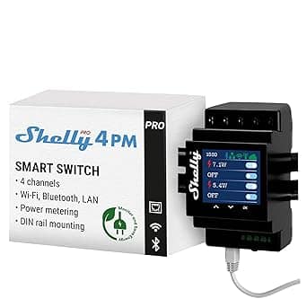 The Shelly Pro 4PM is a professional-grade DIN-rail mounted smart relay switch with four channels and built-in power monitoring for each channel. Designed for advanced automation and energy management, it supports multiple connectivity options and operates securely without cloud dependency.