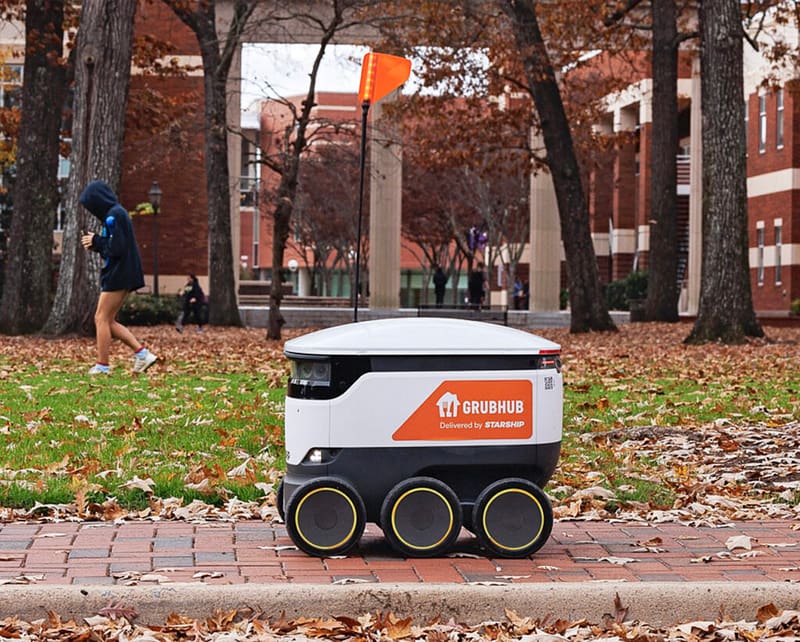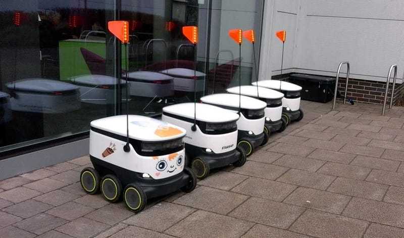 website:https://www.starship.xyz/ Each robot is about the size of a large cooler, typically measuring around 55 cm (21.7 inches) in height and weighing approximately 20–25 kg (44–55 lbs) when empty. They are engineered for efficiency and durability, built with a rugged outer shell and weather-resistant materials to navigate a wide range of urban and suburban environments, including sidewalks, curbs, and pedestrian crossings.