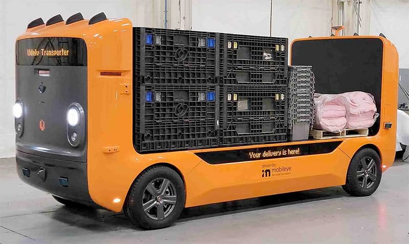 Udelv Transporter is an advanced, cab‑less, autonomous electric delivery vehicle built for multi‑stop logistic routes. Designed by Silicon Valley’s Udelv and powered by Mobileye’s Level 4 Drive system, it represents a major stride in large‑scale goods mobility