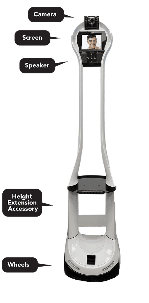 VGO enables remote physicians, family, and specialists to interact with patients in hospitals and clinics, supporting virtual rounding and consults.